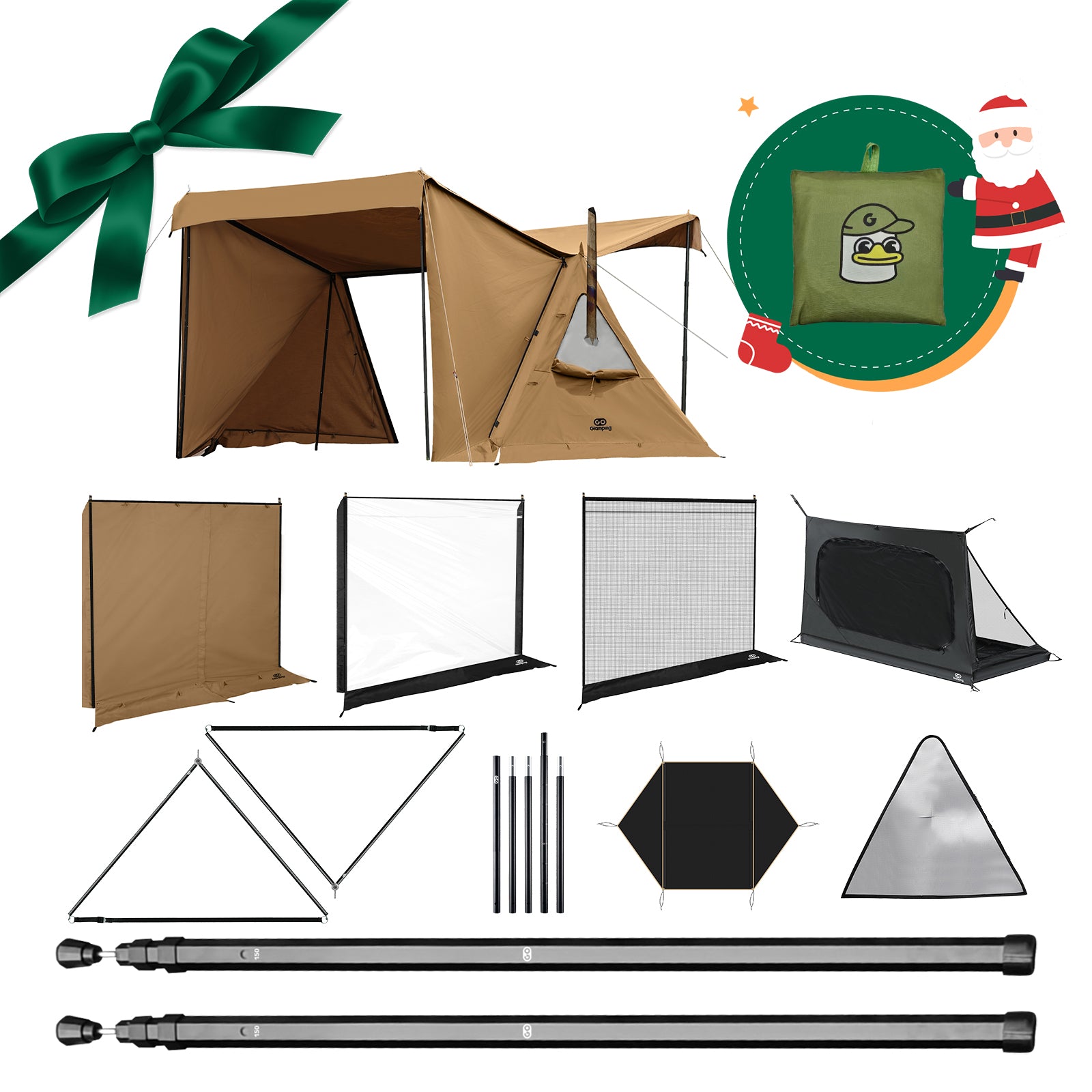 オプションの「TPU前幕」は、ジッパーとベルクロで連結することで、外部の空気を遮断しながら、窓のように外の景色を眺めることができる逸品です。視界を広げ、開放感を演出し、テント内の快適さを一層向上させます。