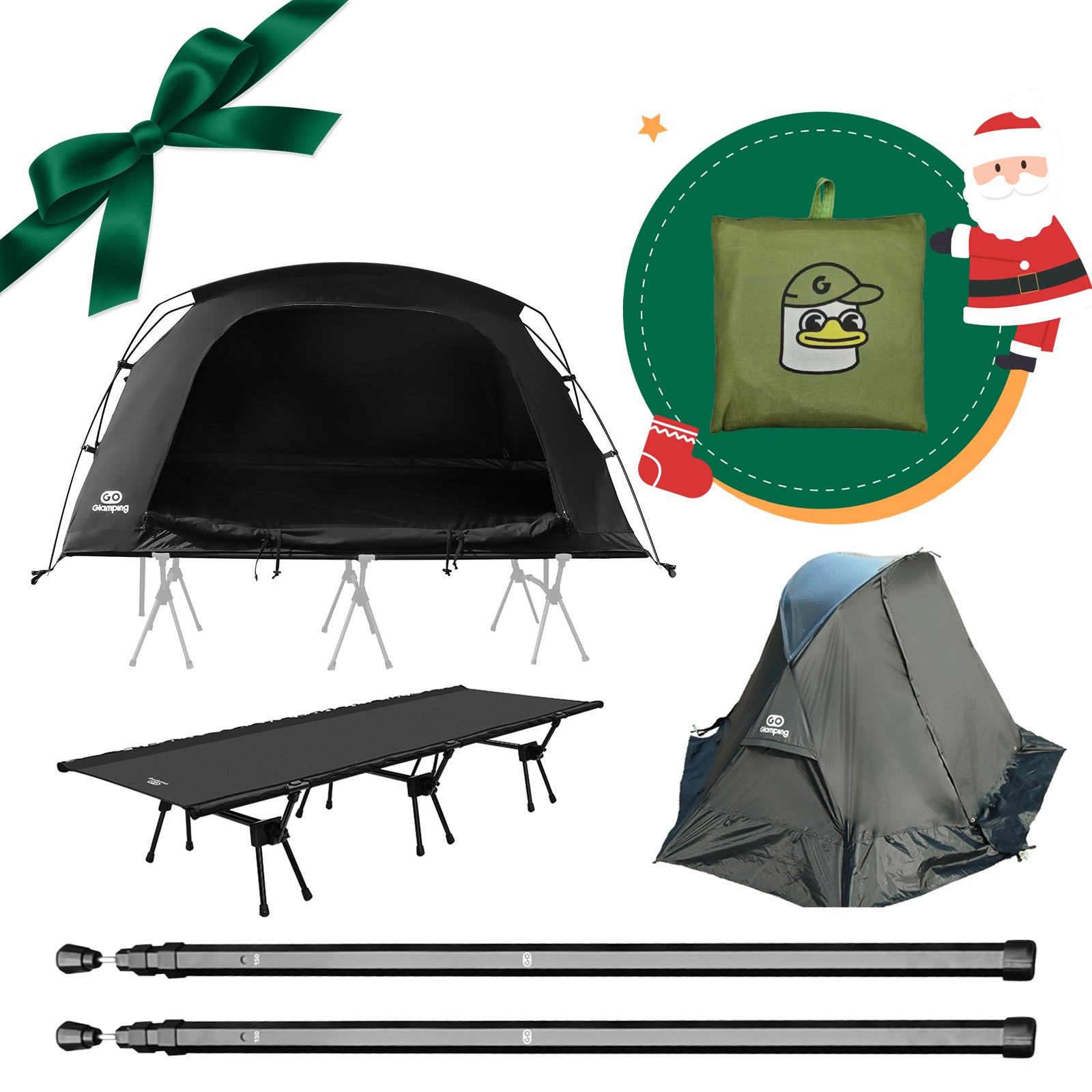 フコットテント、コットなし地面テント、カンガルーテントの三つのスタイルで使用できるため、多様なシーンに適応できます。コットテントとして使用すると、地面からの高さを確保でき、ほこりや虫、地面からの湿気を防ぐことができます。雨天時でもテントの底が濡れず、どこでも快適に眠ることができます。