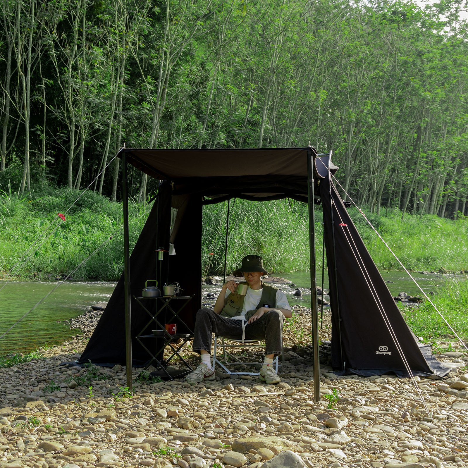 GOGlampingは『キャンプに行こう、自然こそ贅沢だ』というブランドコンセプトを掲げ、ユーザーの視点から人と自然が最も調和して暮らせるモデルを追い求め、「探求」にあふれ 「革新」 と「エコ」をコアとしてアウトドア・キャンプ製品を創造することを目指している。