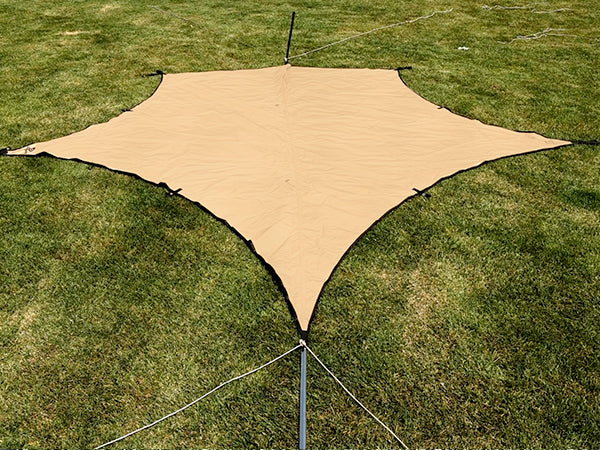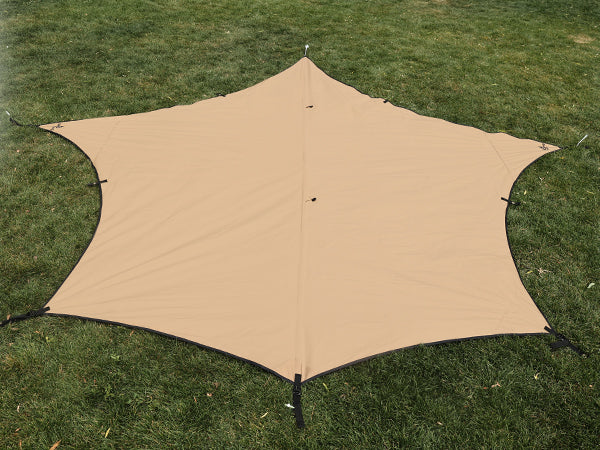 防水タープの中央に2つの追加ポイントを設けることで、ムササビなど特定の形状を設営する際の圧迫感を軽減し、さらに多様な張り方に挑戦することが可能になります。