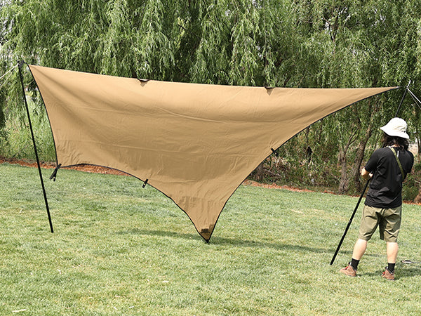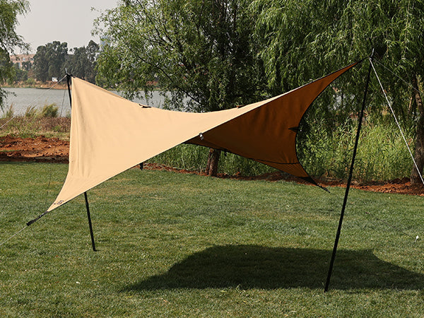 ポール2本を使用、シーンや日の気分に合わせて、お好みの張り方を設営できます。